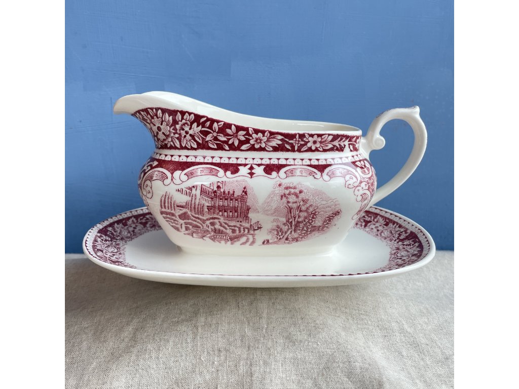 Dekor je proveden v typickém anglickém transferovém stylu v tmavě vínové červené barvě na jemně krémovém podkladu.