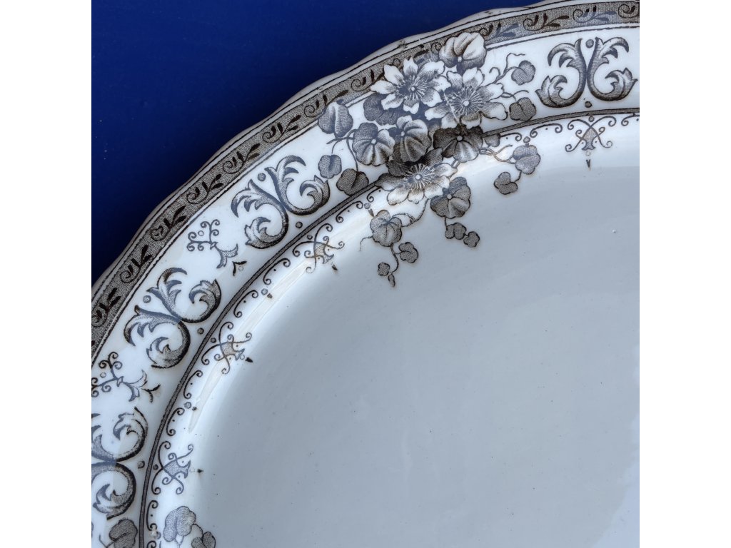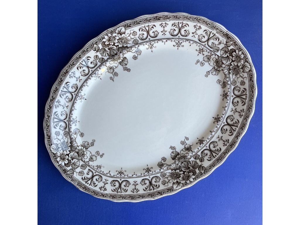 Kameninový podnos oválného tvaru s květinovým dekorem.