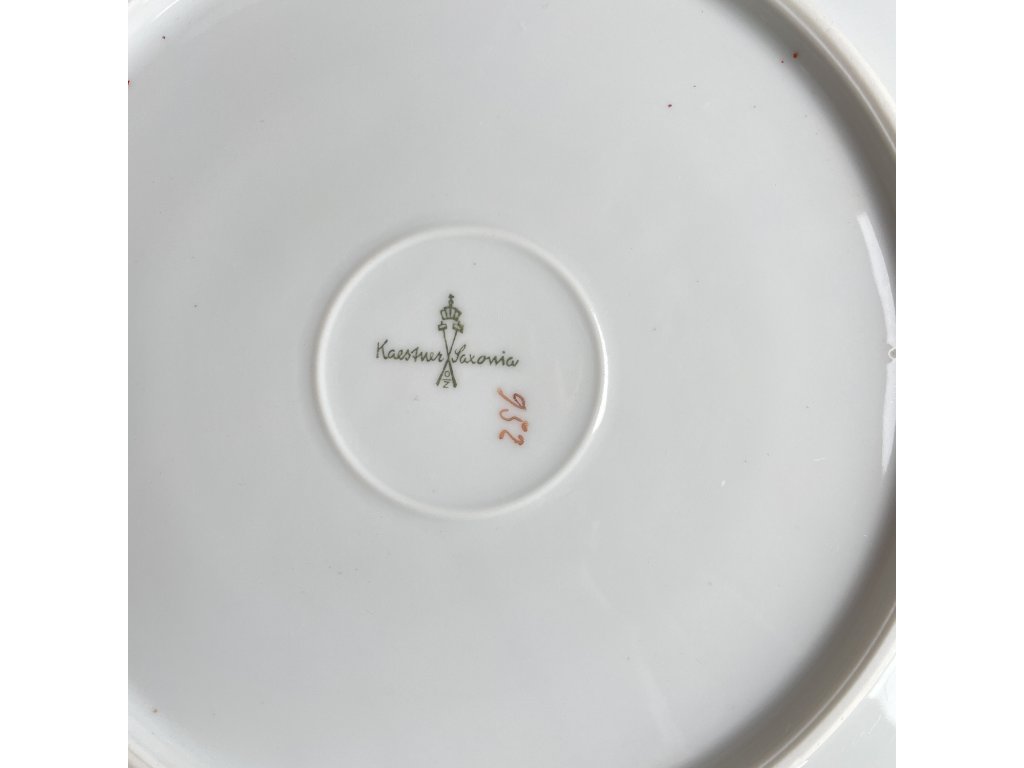 Porcelánový podnos pochází z porcelánky Kaestner Saxonia, výrobce sídlil v německé části Saska, která byla dlouhodobě centrem vysoce kvalitní porcelánové výroby.