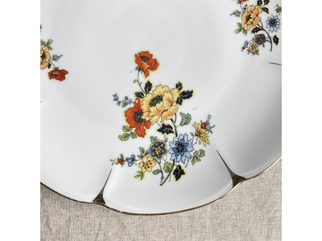 Je vyroben z kvalitního bílého porcelánu a zdoben květinovým motivem, který tvoří pestrou kombinaci červených, žlutých, modrých a oranžových květů.