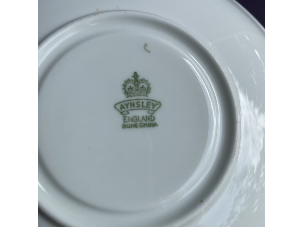 Reprezentativní porcelánový podšálek pochází z anglické manufaktury Aynsley, která byla založena již roku 1775 a proslavila se výrobou luxusního kostního porcelánu.