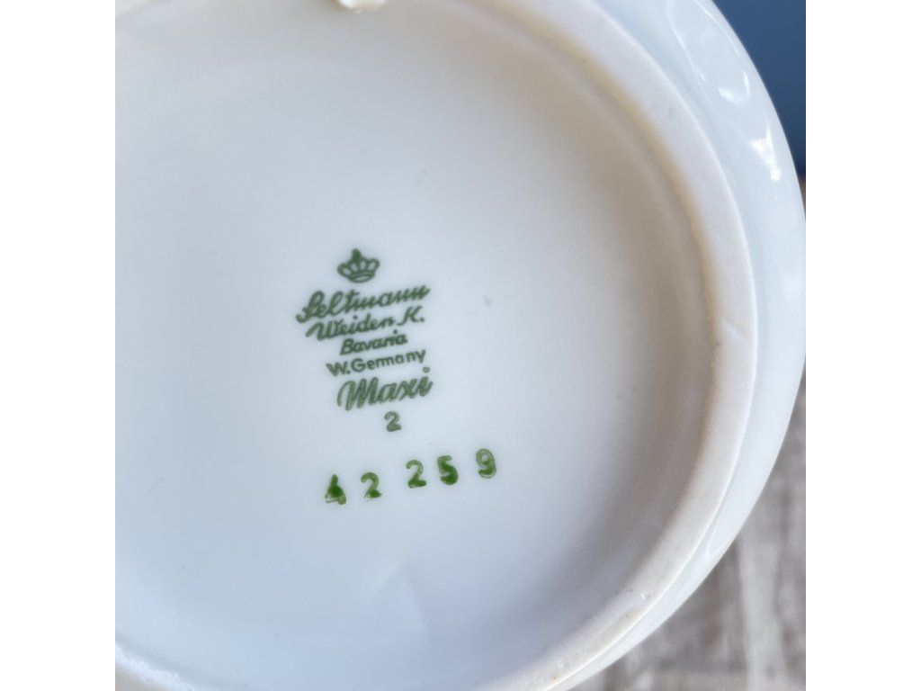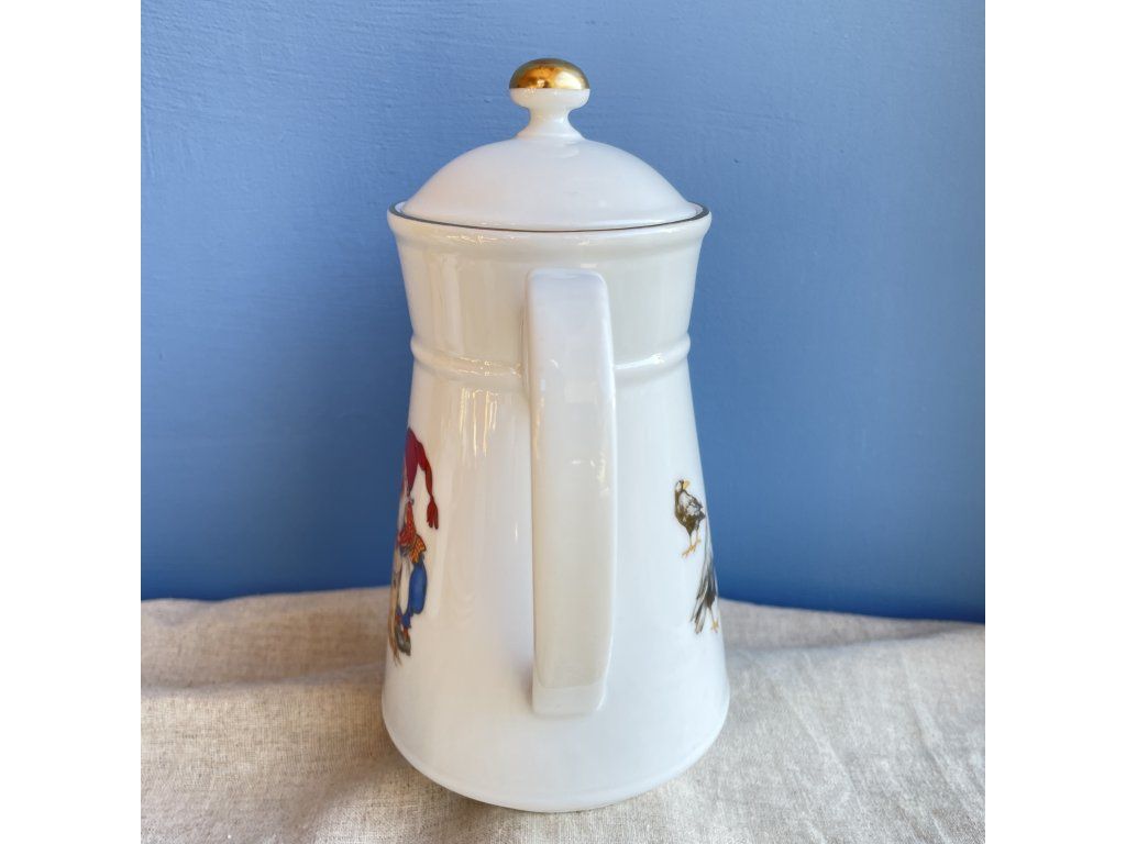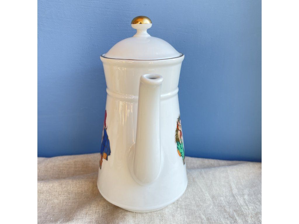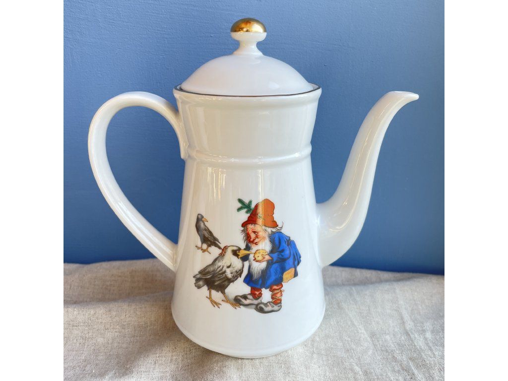 Značka porcelánky Seltmann Weiden, konvice pochází z druhé poloviny 20. století a představuje kvalitní německý porcelán vhodný jak pro běžné používání, tak i jako dekorativní či sběratelský kus s nostalgickým, pohádkovým motivem.