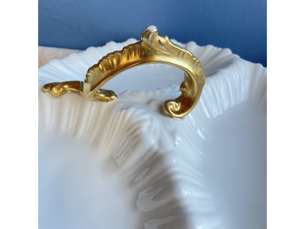Je vyrobena z jemného bílého porcelánu s lesklou glazurou a zdobena vlnitými, mušlovitě tvarovanými okraji, které dodávají celému kusu živost a lehkost.