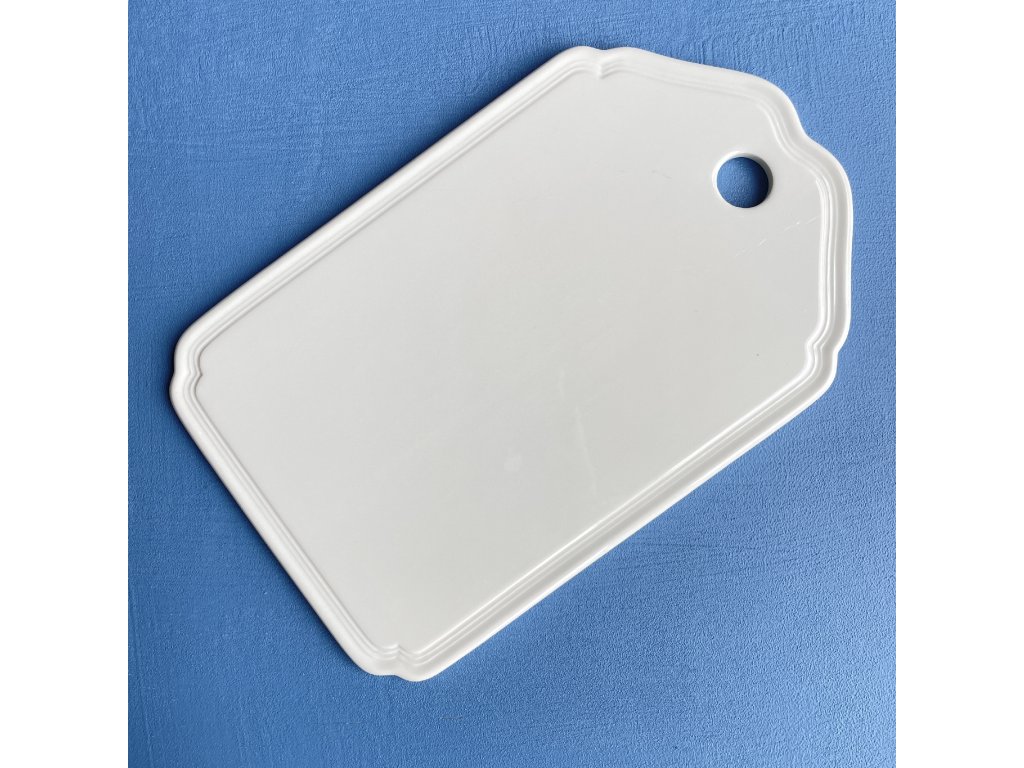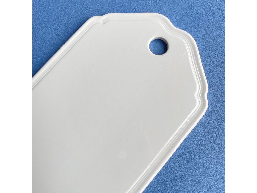 Reliéfní lem po obvodu dodává prkénku dekorativní charakter, zatímco hladká, leskle glazovaná plocha působí nadčasově.