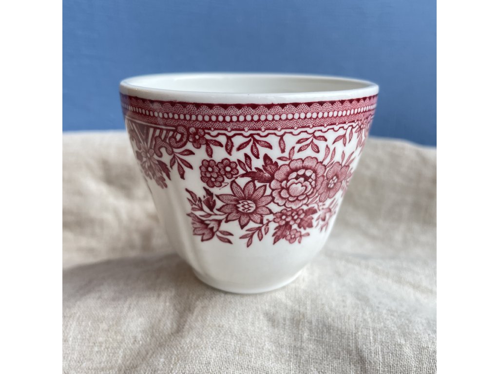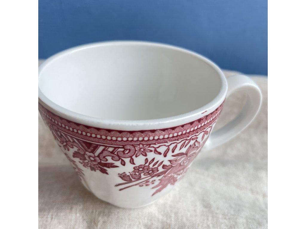 Hrnek je vyroben z jemného vitroporcelánu a zdoben tradičním červeným transferovým dekorem s bohatými květinovými motivy, které jsou charakteristické pro oblíbenou řadu Fasan.