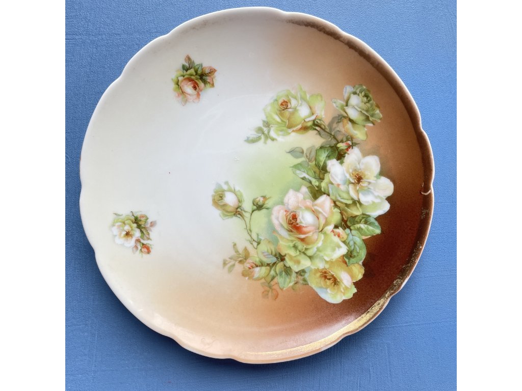 Porcelánový talíř s jemně zvlněným okrajem a romantickým květinovým dekorem.