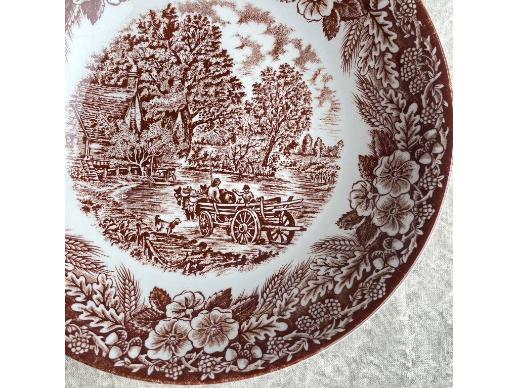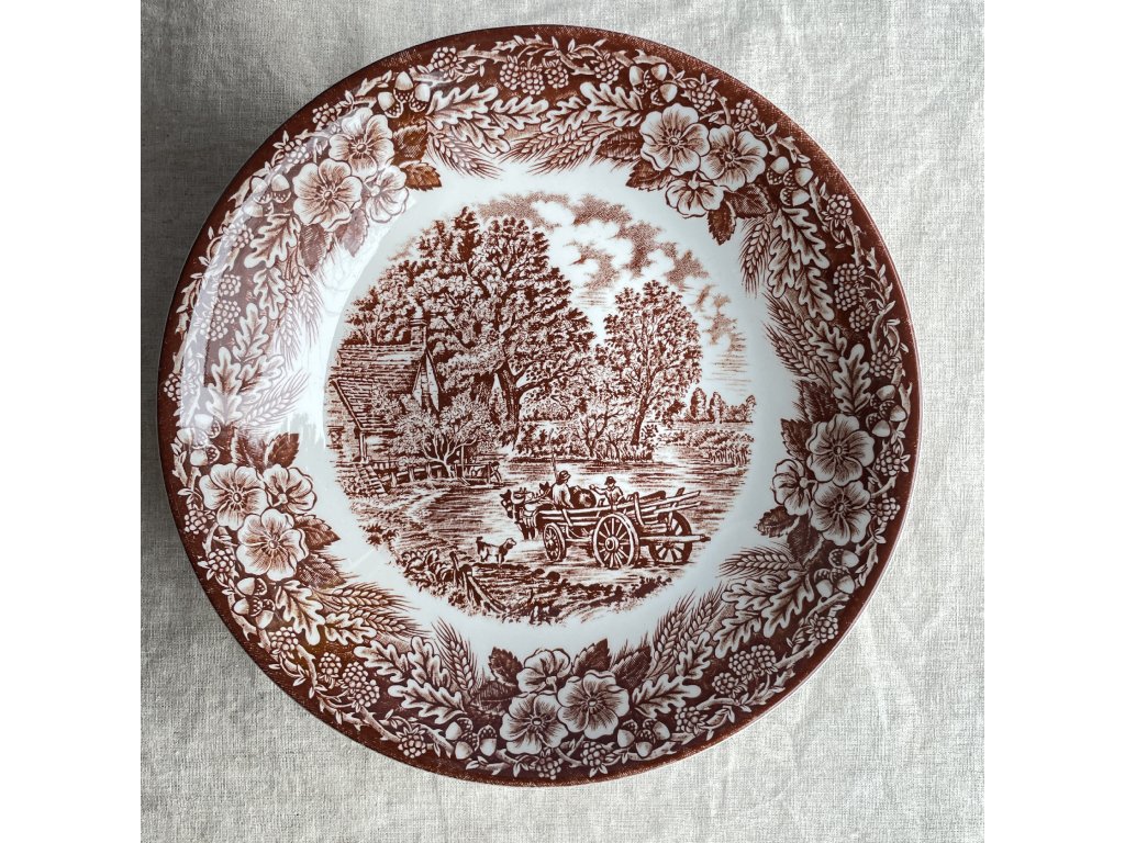 Salátová mísa je vyrobena z kvalitní anglické kameniny typu ironstone a zdobena bohatým hnědočerveným transferovým tiskem v tradičním venkovském stylu.