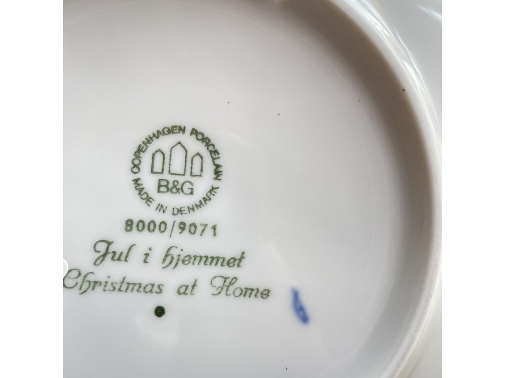 Sběratelský talíř pochází z dílny dánské porcelánky Bing & Grøndahl, což potvrzuje značka B&G s motivem tří věžiček a nápisem Copenhagen Porcelain - Made in Denmark na rubu.