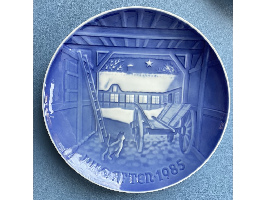 Sběratelský porcelánový talíř s názvem „Jule Aften 1985“ byl vydán dánskou porcelánkou Bing & Grøndahl, jejíž značka B&G se nachází na zadní straně spolu s textem „Jul i den gamle gård – Christmas Eve at the Farmhouse“.