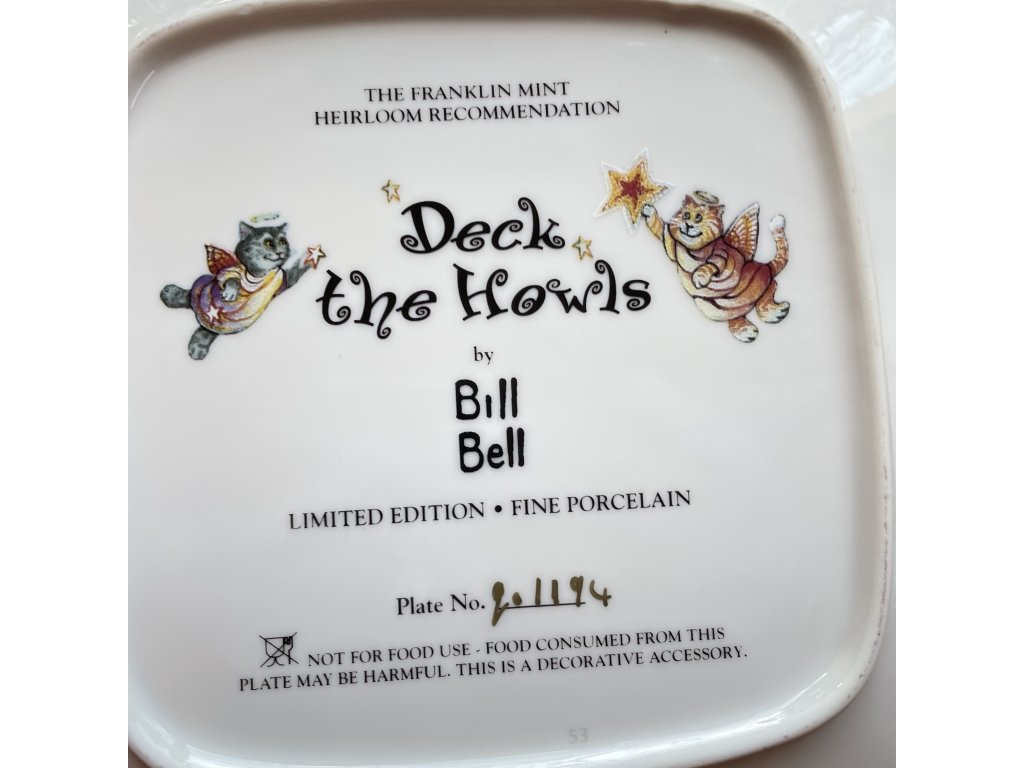 Porcelánový talíř s názvem "Deck the Howls" je dekorativním sběratelským kusem z limitované edice vytvořené americkým umělcem Billem Bellem, známým svými detailními a hravými ilustracemi s motivy koček.