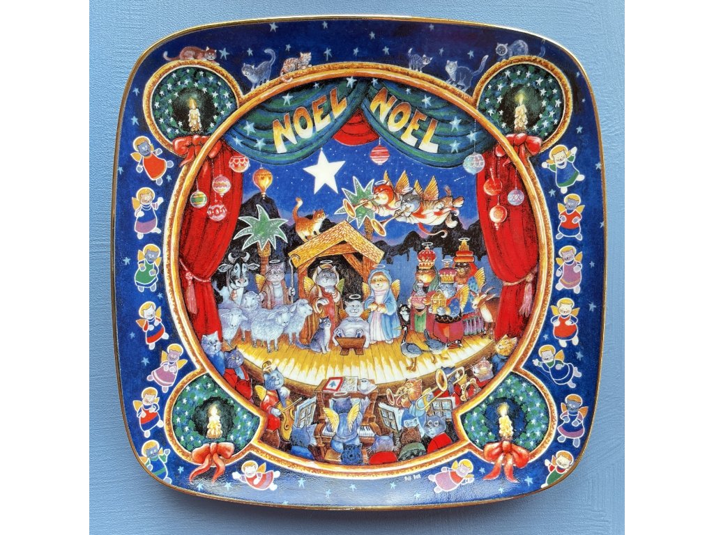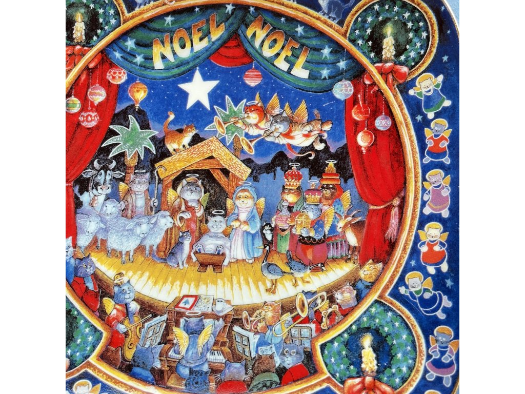 Samotný motiv talíře zachycuje kouzelnou vánoční scénu plnou koček v rolích andílků, elfů a dalších postaviček, které pomáhají Santovi s přípravou dárků.