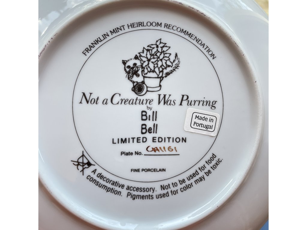 Dekorační talíř nese název "Not a Creature Was Purring" a je součástí limitované sběratelské série navržené americkým umělcem Billem Bellem, známým pro své detailní a humorné ztvárnění koček v lidských rolích.