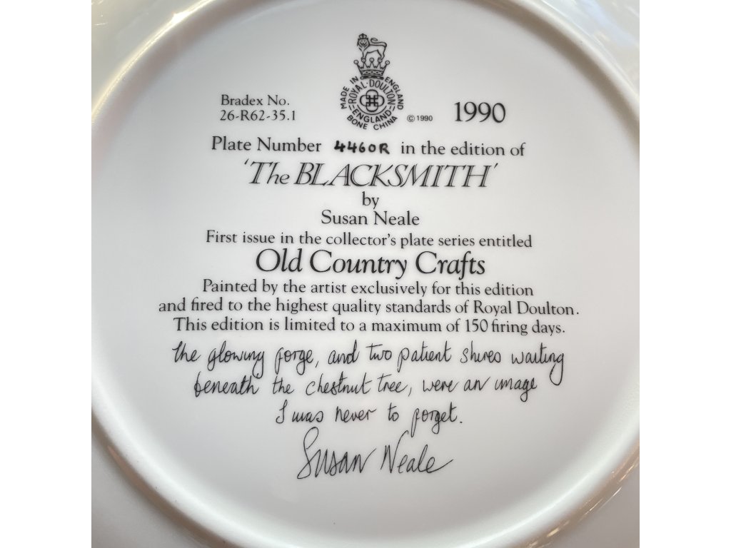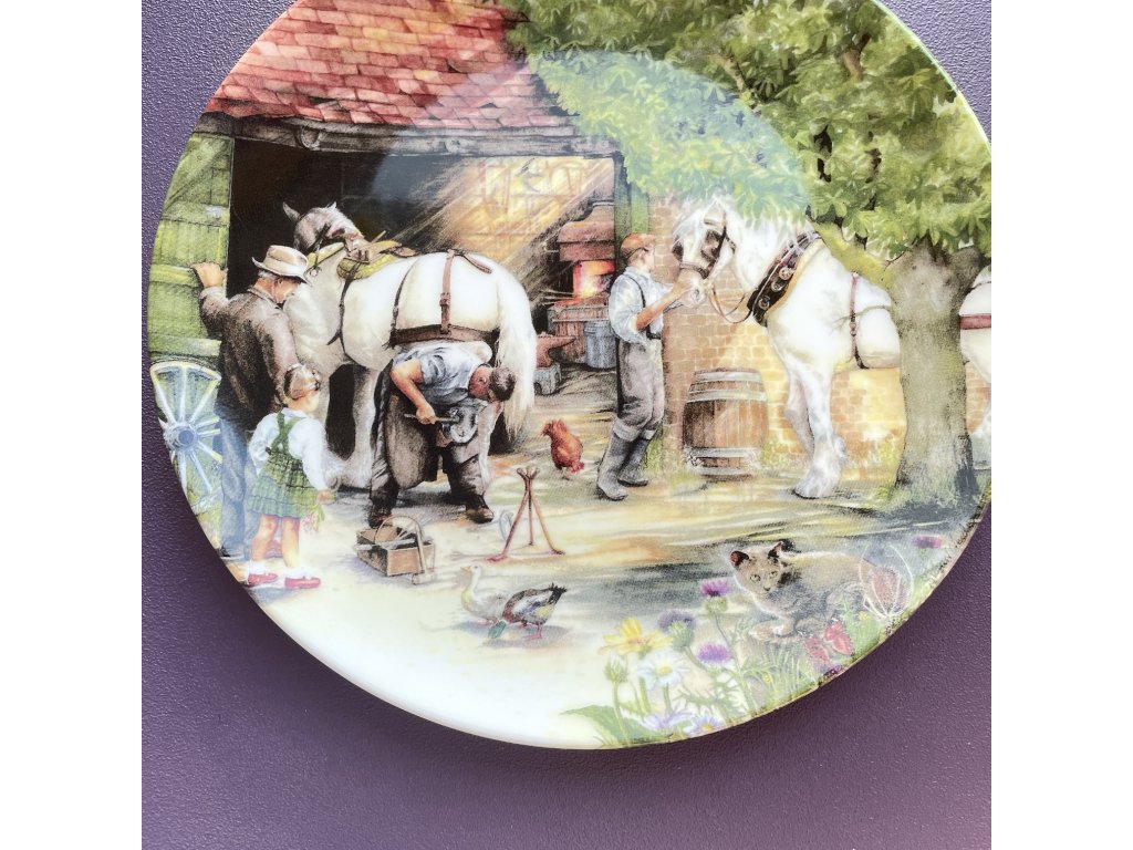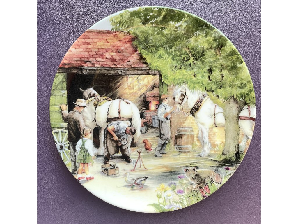Porcelánový sběratelský talíř nese název „The Blacksmith“ (Kovář) a zachycuje detailně vykreslenou scénu ze života na anglickém venkově.