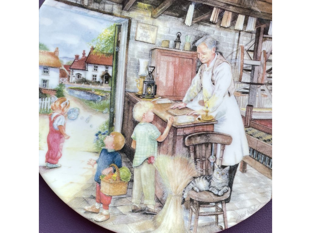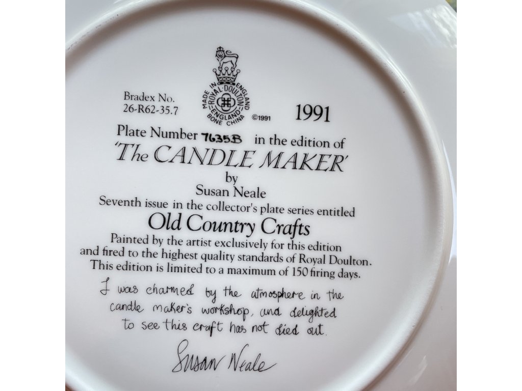 Dekorativní porcelánový talíř nese název „The Candle Maker“ (Výrobce svíček) a pochází ze sběratelské série Old Country Crafts (Staré venkovské řemesla).