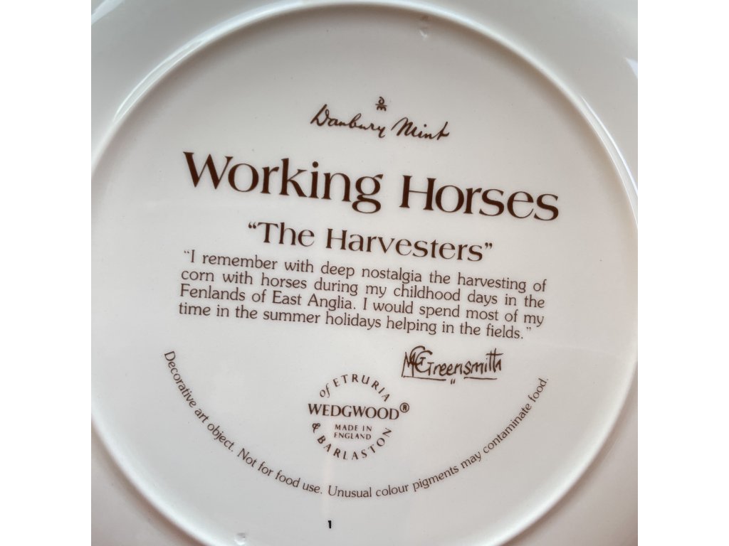 Dekorativní talíř s názvem „The Harvesters“ je součástí série „Working Horses“, kterou navrhl umělec M.G. Greensmith.