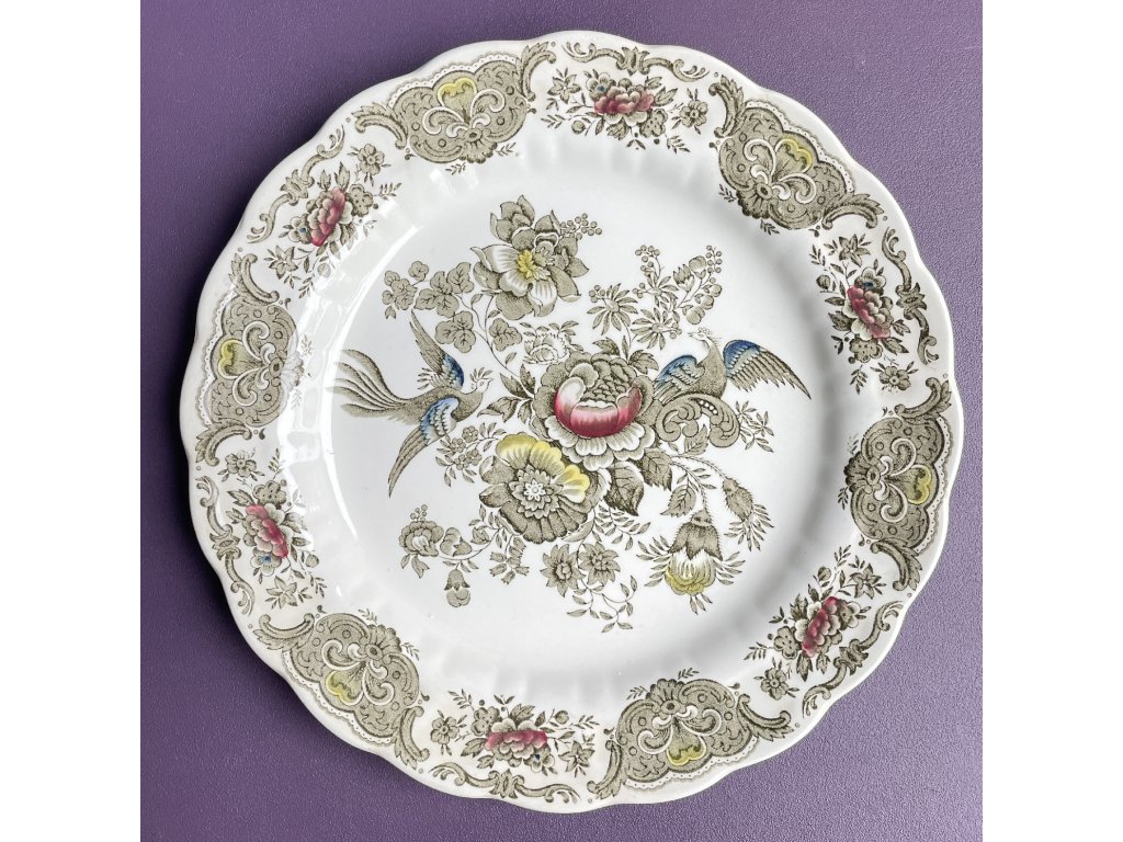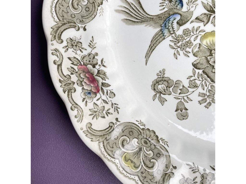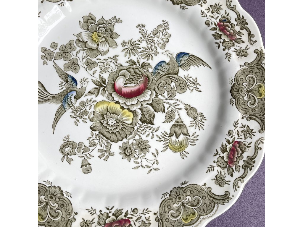 Velký servírovací talíř pochází z anglické porcelánky Ridgway, která sídlila v hrabství Staffordshire a fungovala již od roku 1792.