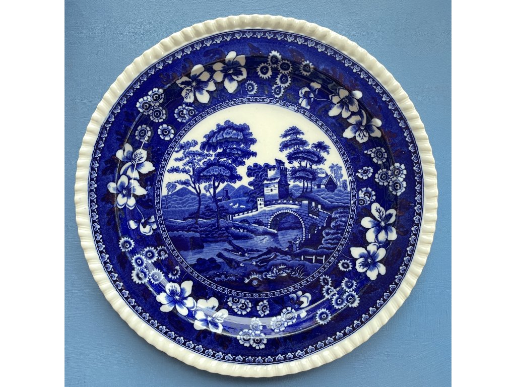 Servírovací talíř je ukázkou tradičního anglického porcelánu ve stylu „Blue & White“.