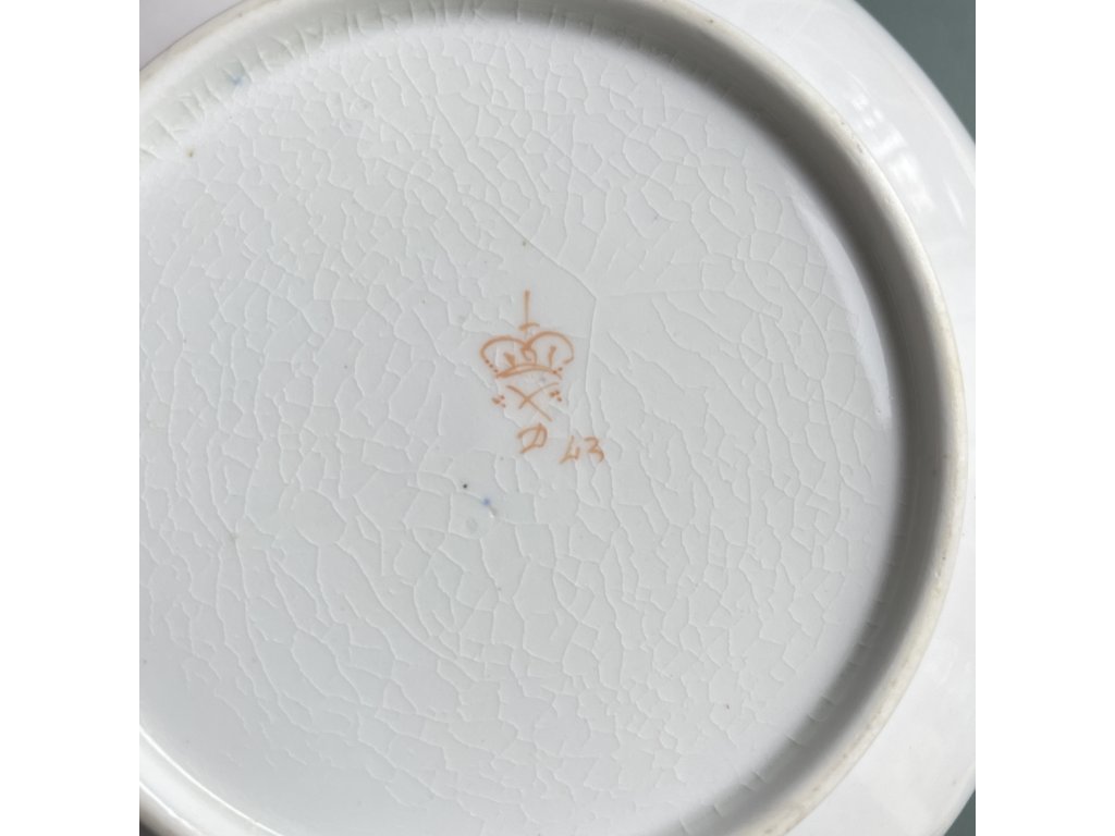 Glazura na porcelánu má výrazné krakelování (jemné popraskání), což je časté u starého porcelánu a svědčí o jeho stáří.