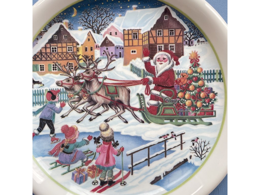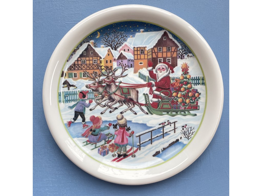 Porcelánový talíř s veselou zimní scénou pochází z německé porcelánky Arzberg, značka je synonymem pro kvalitní porcelán s dlouholetou tradicí a výborným dekorem.