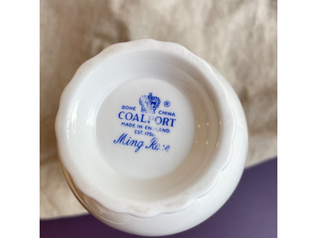 Malá porcelánová váza pochází z anglické porcelánky Coalport, která byla založena v roce 1750 a je známá svou produkcí luxusního kostního porcelánu (Bone China).