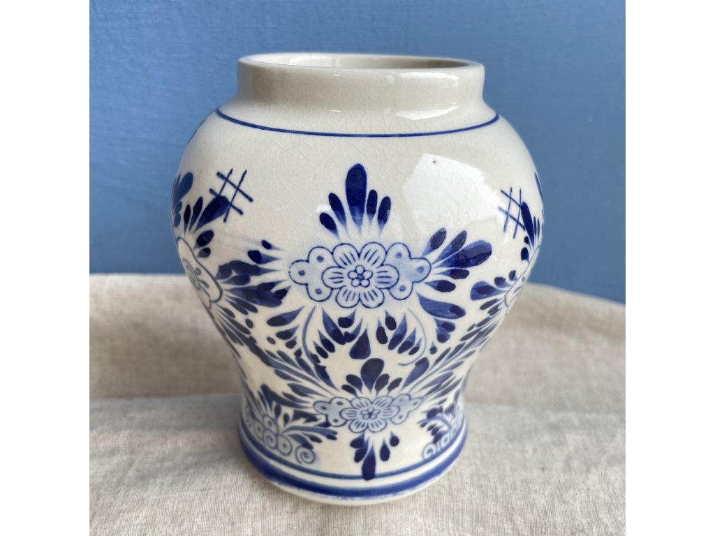 Celý povrch vázy je pokryt jemnou sítí krakelování, tedy popraskáním glazury, které vzniká přirozeným stárnutím materiálu.