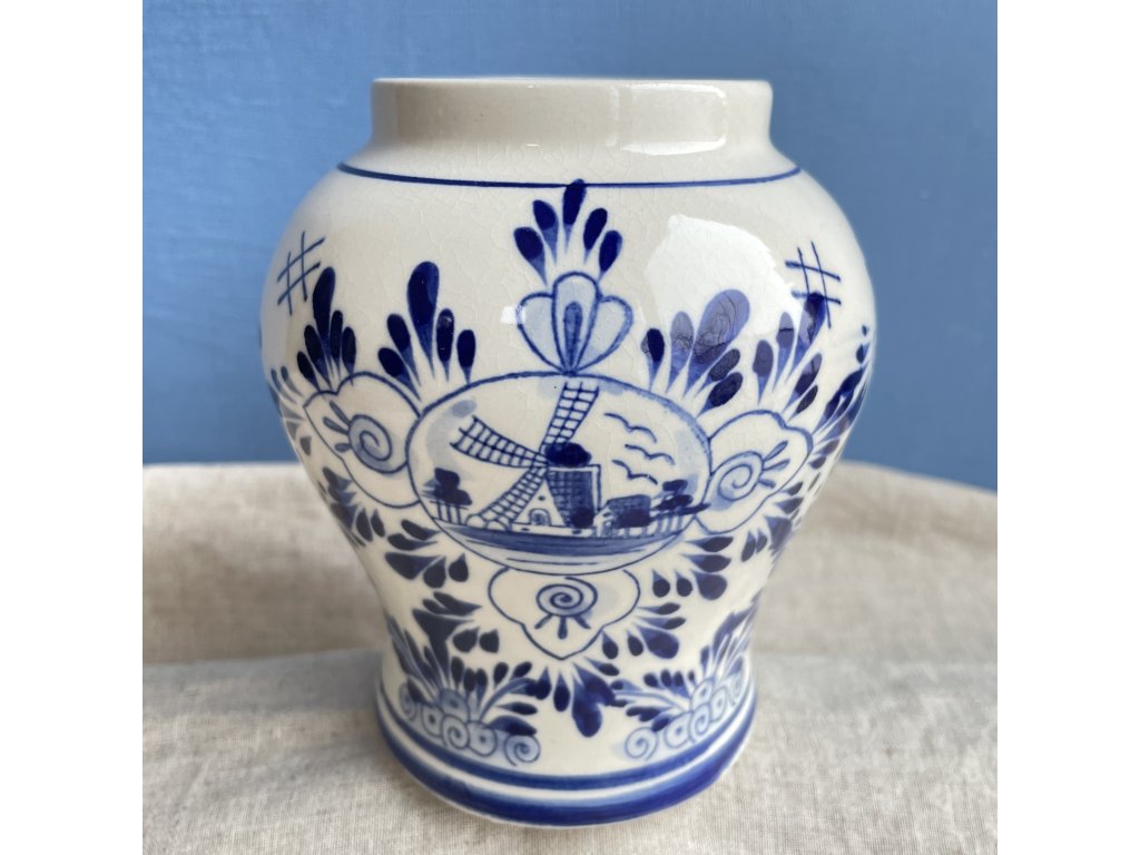 Je zdobená typickým modrobílým dekorem, který nese znaky takzvaného delftského stylu, inspirovaného nizozemskou fajáns.