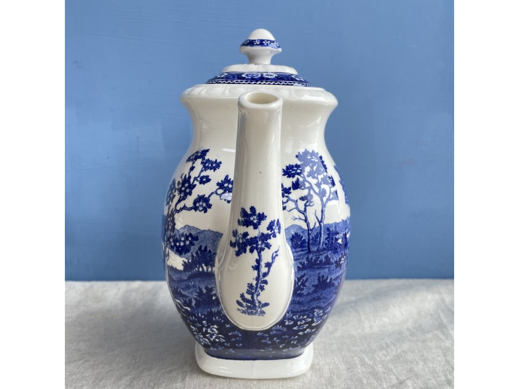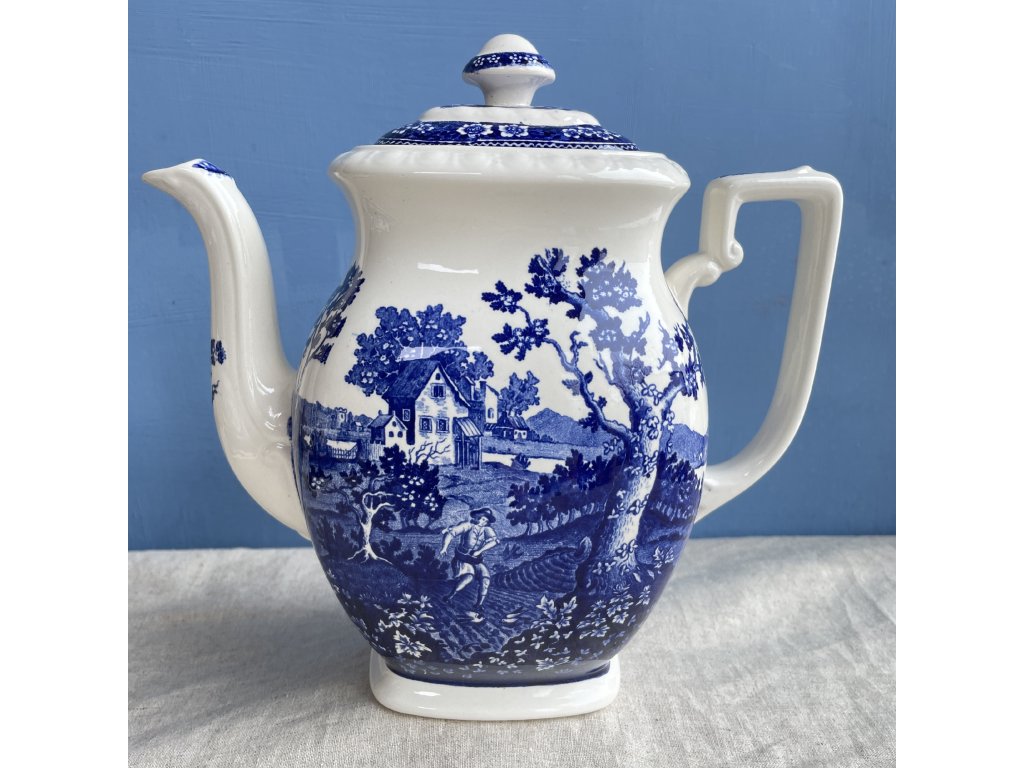 Konvice je zhotovena z kvalitního glazovaného porcelánu s jemně krémovým odstínem a zdobena výraznou kobaltově modrou podglazurní malbou provedenou technikou mědirytového tisku.